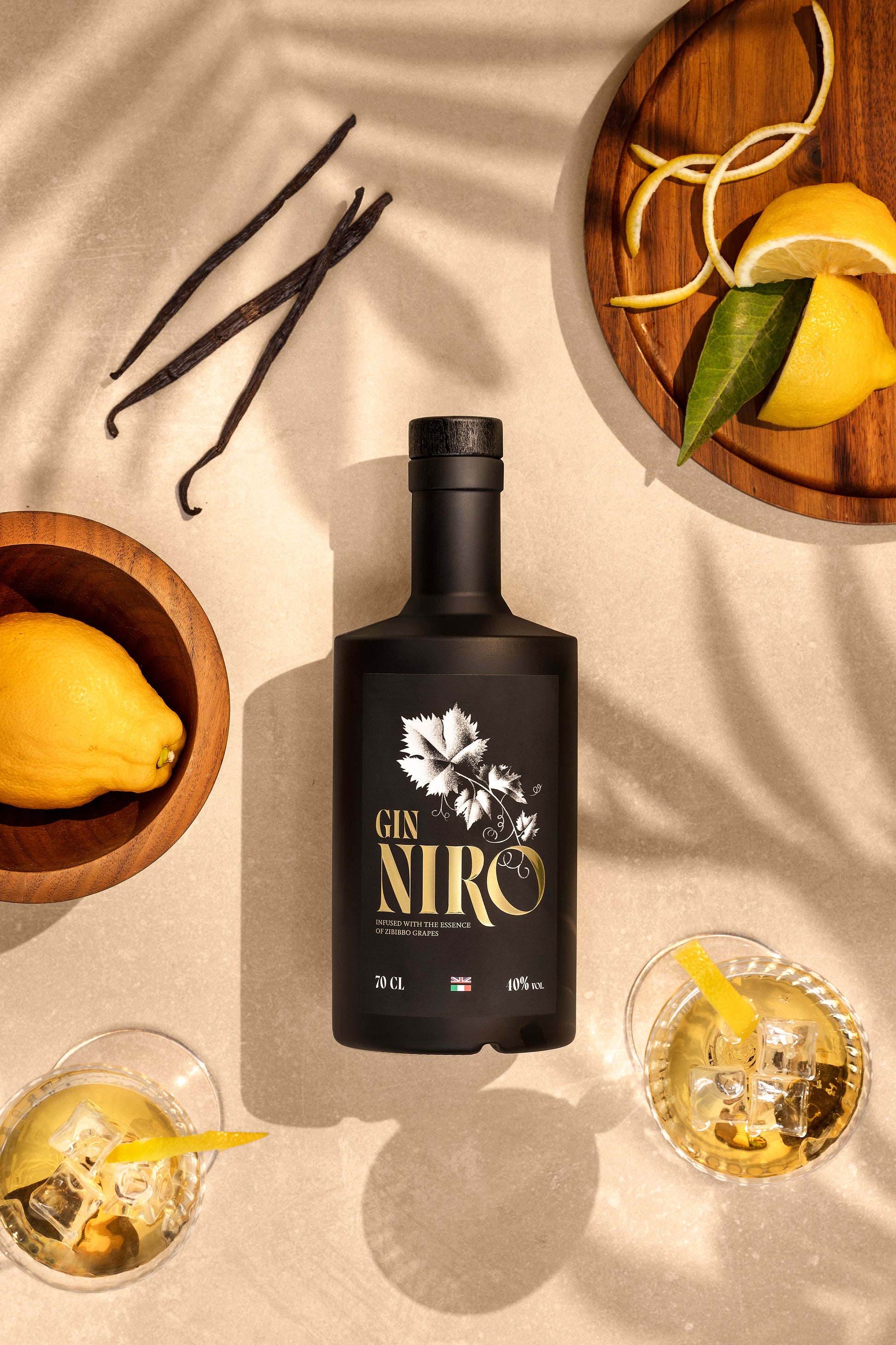Botaniche: ginepro, scorze di arance e limoni siciliani, vaniglia del Madagascar, Zibibbo siciliano